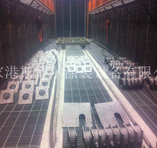 2.9 臺車退出噴砂房,卸載工件。